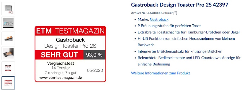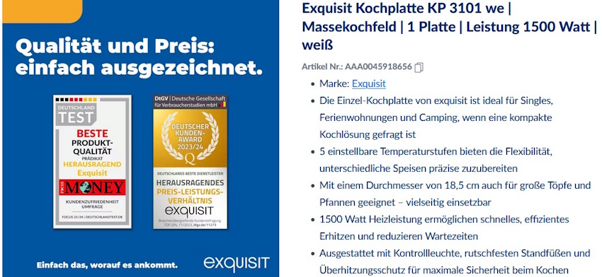 „Deutschlands beste Dienstleister – Herausragendes Preis-Leistungs-Verhältnis“. Mit diesem Label der Deutschen Gesellschaft für Verbraucherstudien (DtGV) sowie mit dem Label „Beste Produktqualität – Prädikat herausragend“ von Focus Money/Deutschlandtest werden auf dem Online-Marktplatz der Metro über 350 Hausgeräte wie Geschirrspüler, Kühlschränke, Herde oder Dunstabzugshauben der Firma Exquisit beworben. Auch bei Kaufland finden sich die beiden Label auf vielen Produkten.