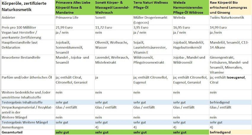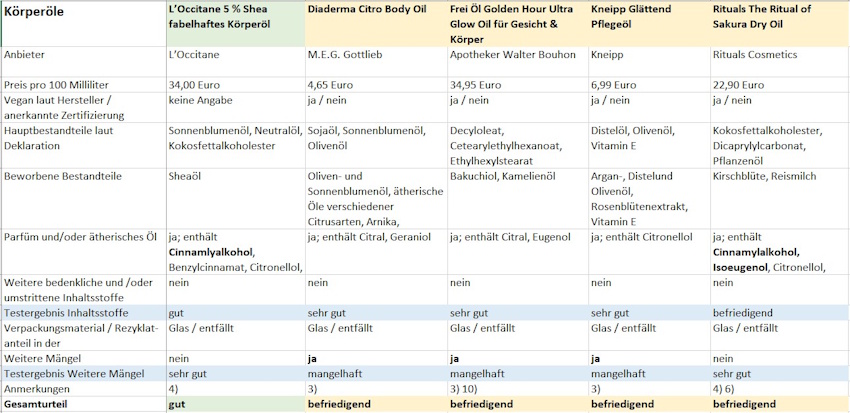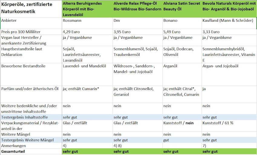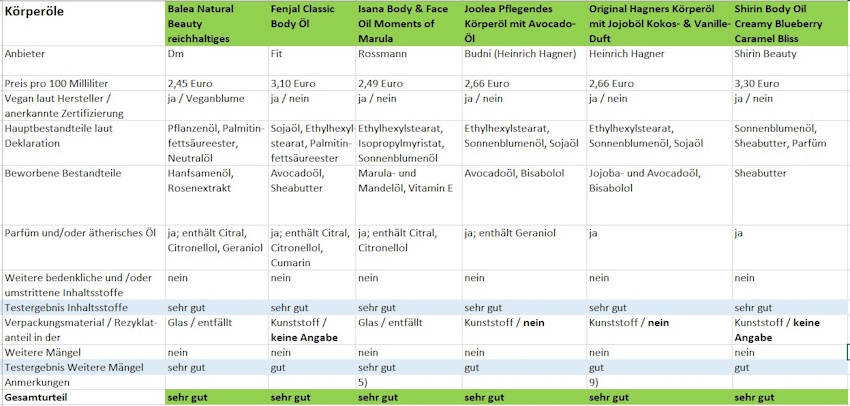 Viele Fragen wirft auch der Test Körperöle auf. Und auch er enthält Fehler. Wir haben ihn und die anderen Tests in den gleichnamigen Reitern dokumentiert und kommentiert.