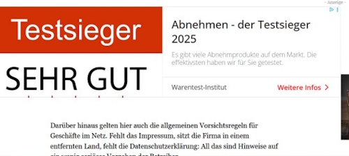 Doch ausgerechnet diese Seite darf an drei Stellen in dem Bericht eine Anzeige platzieren. Wir haben daher der Chefredaktion der Frankfurter Rundschau geschrieben: warentest-institut.eu ist einer dieser unseriösen Vergleichsanbieter, die im Beitrag beschrieben werden. Der Namensbestandteil "warentest" in der url täuscht die User zusätzlich. Eine Antwort haben wir nicht bekommen und passiert ist auch nichts, obwohl das möglich wäre. Zwar sollen die Redaktion und die Anzeigenabteilung strikt getrennt sein. Aber aus inhaltlichen Gründen kann ein Verlag bestimmte Anzeigen ablehnen. Öko-Test beispielsweise müsste keine Anzeigen von Atom- oder Ölkonzernen annehmen, die FR keine von rechtsradikalen Parteien. Und auch nicht von unseriösen Vergleichsanbietern.