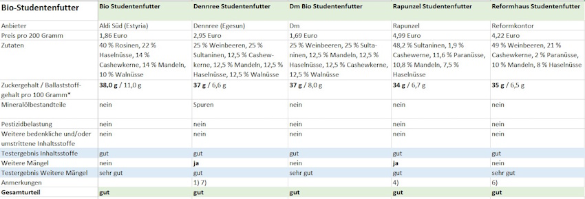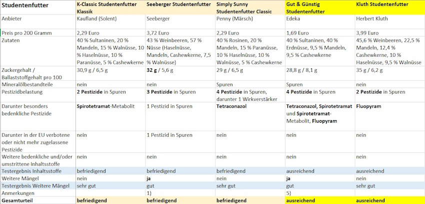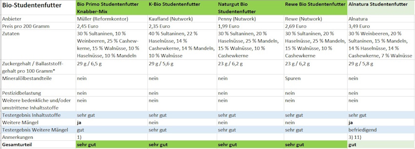 Unsere Einschätzung: Im Test Studentenfutter fanden wir die ersten Fehler, aber nicht die letzten. Für drei Produkte ergeben die von Öko-Test aufgeführten Inhaltsstoffe nicht 100 Prozent.